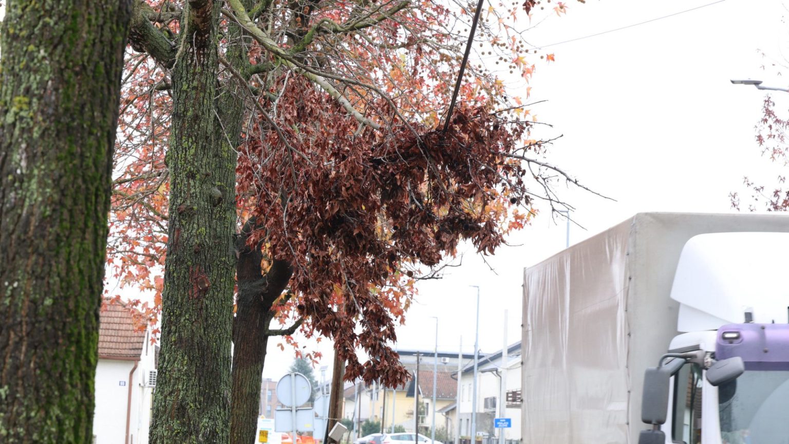 Grane se nalaze iznad nogostupa u donjem dijelu ulice, a već na prvi pogled vidi se da su napuknute i nagnute. Da stvar bude gora, nagnute su nad strujnim kablovima pa ih je nemoguće samo tako ukloniti.
