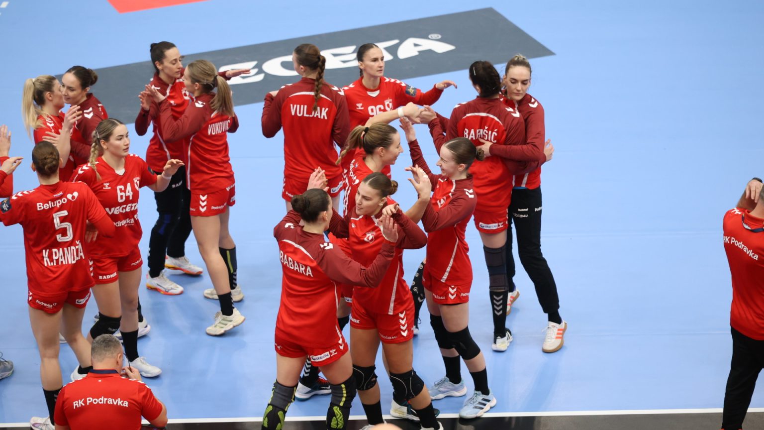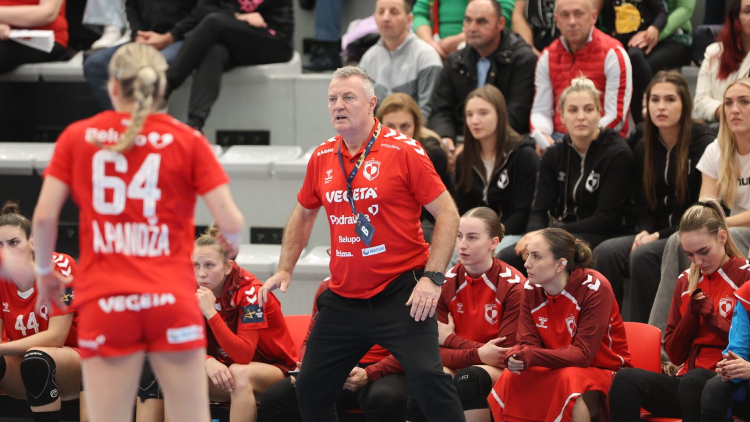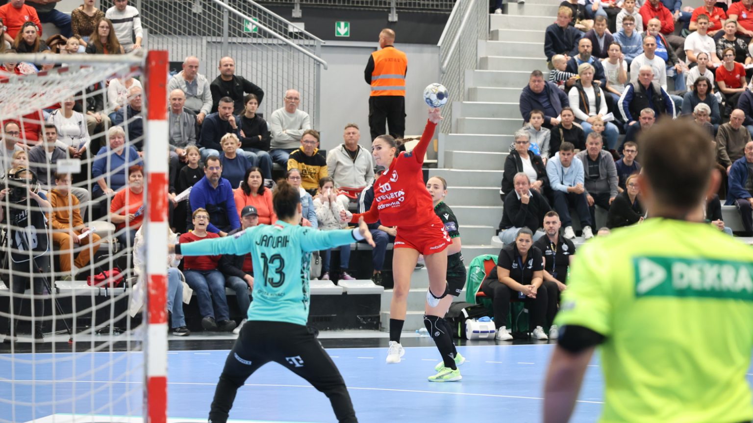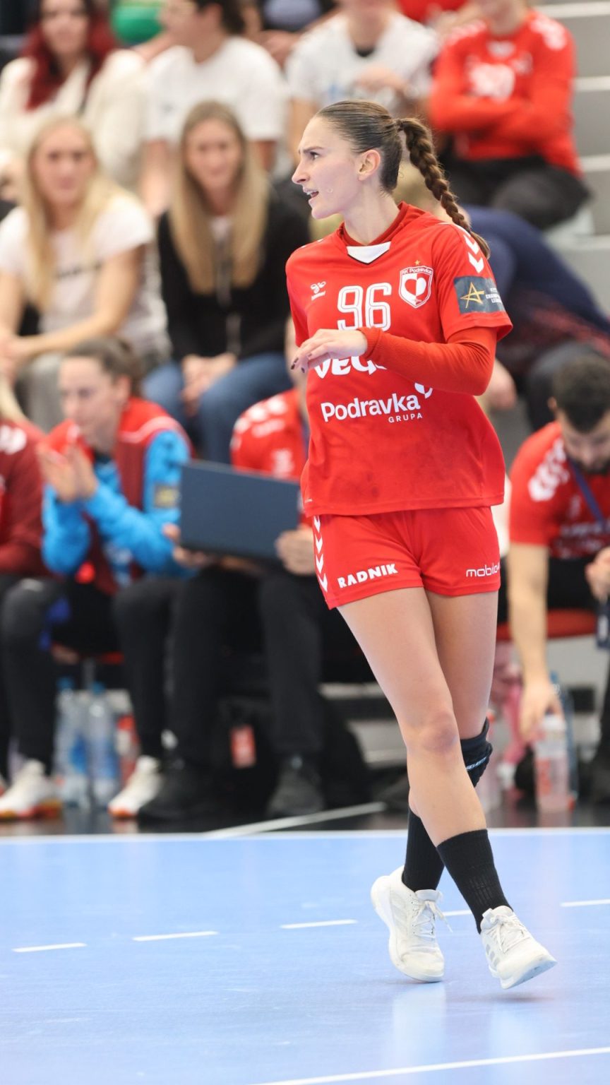 Podravka je na poluvremenu zaostajala s tri gola razlike (16:19), a nastavak je donio još više pogodaka i napetu završnicu, no domaće djevojke se nisu uspjele približiti dovoljno da bi preokret bio moguć. Najefikasnija igračica u redovima Podravke bila je Katarina Panđa s čak osam pogodaka, slijedile su je Matea Pletikosić sa sedam i Josipa Mamić sa šest. Ana Debelić postigla je četiri, Andrea Šimara tri, Tina Barišić i Ana Pandža po dva, dok se jednom u strijelce upisala Katja Vuković. Vratarka Lucija Bešen bila je na 14% obrana.
