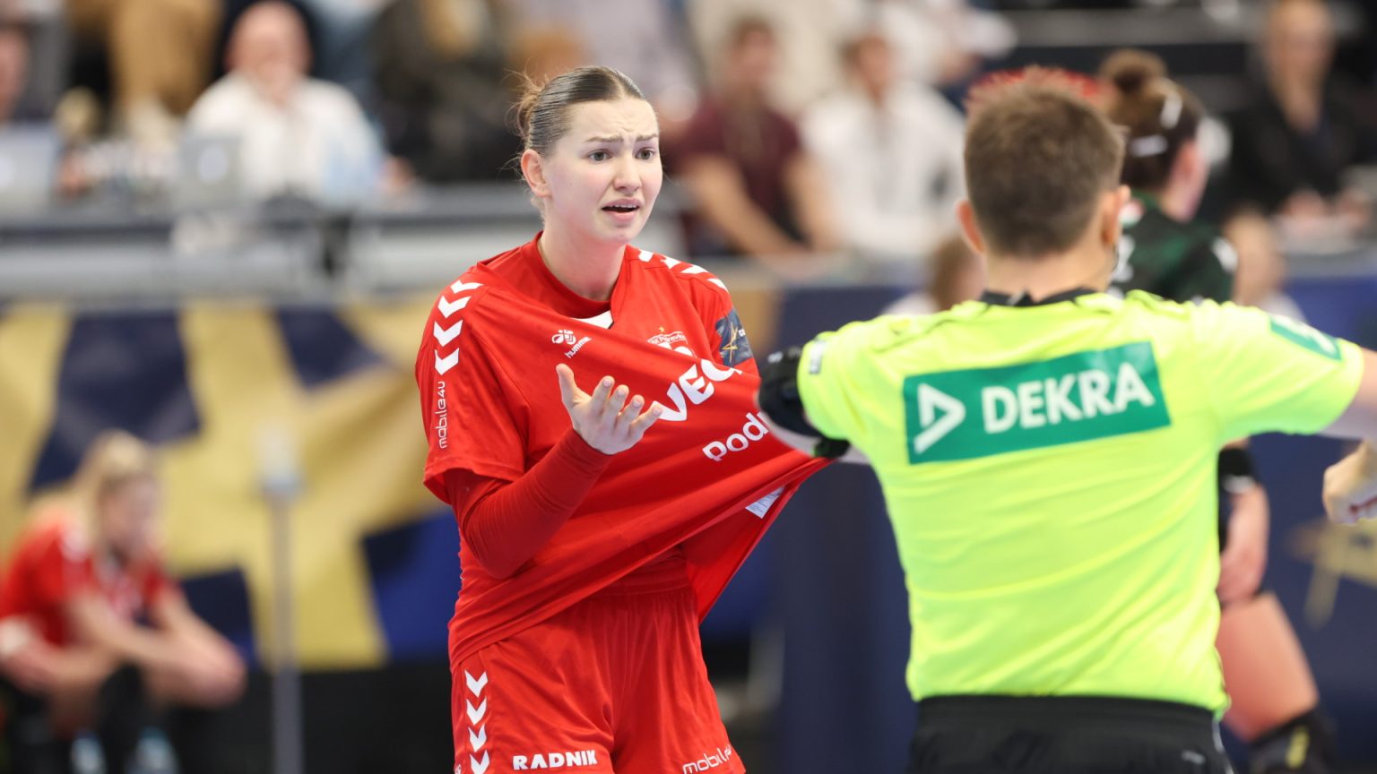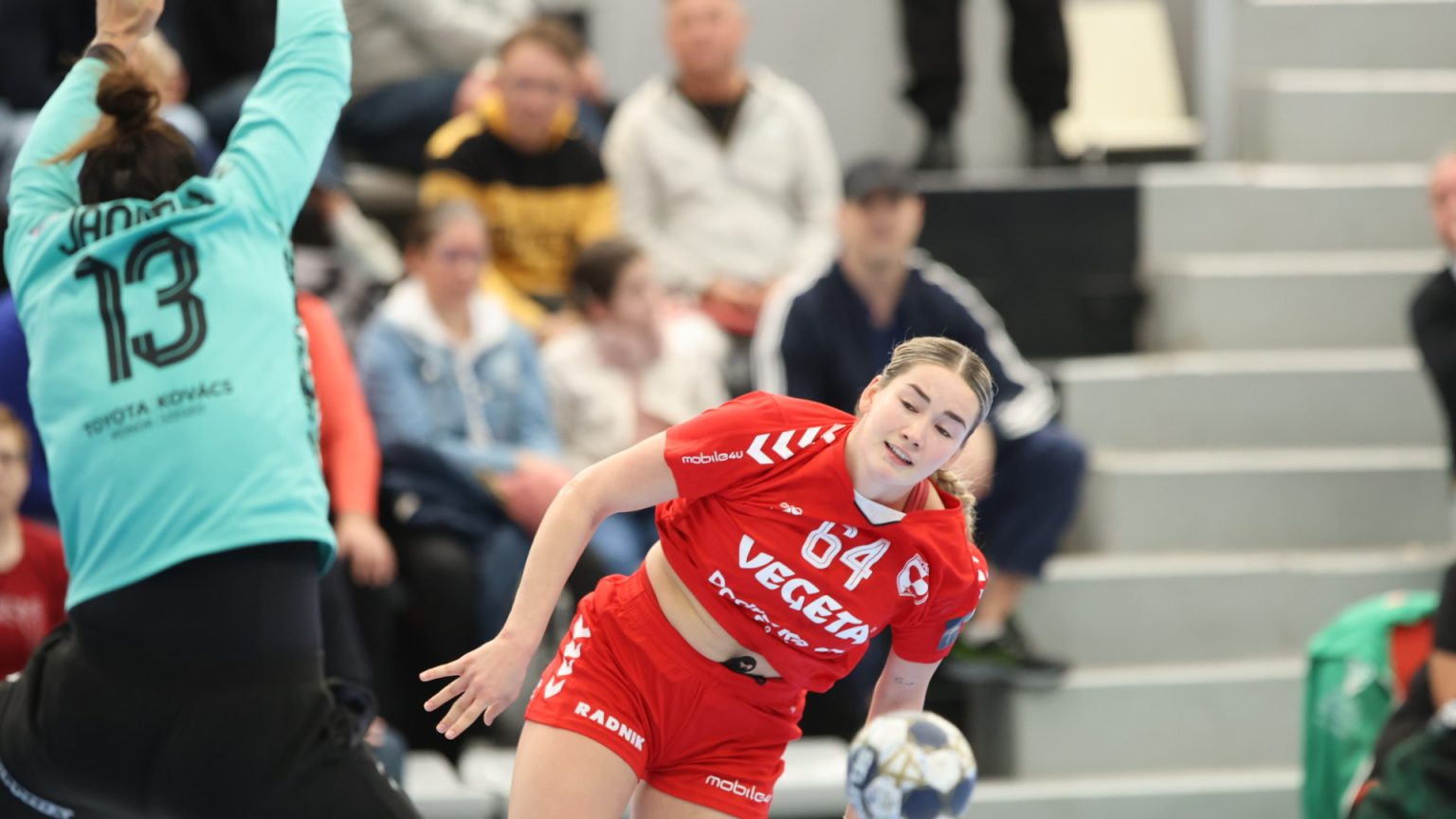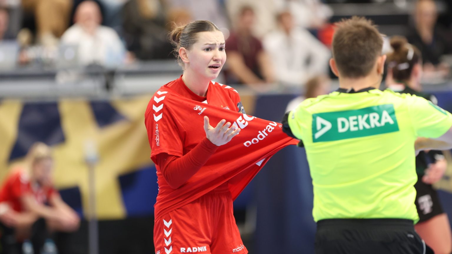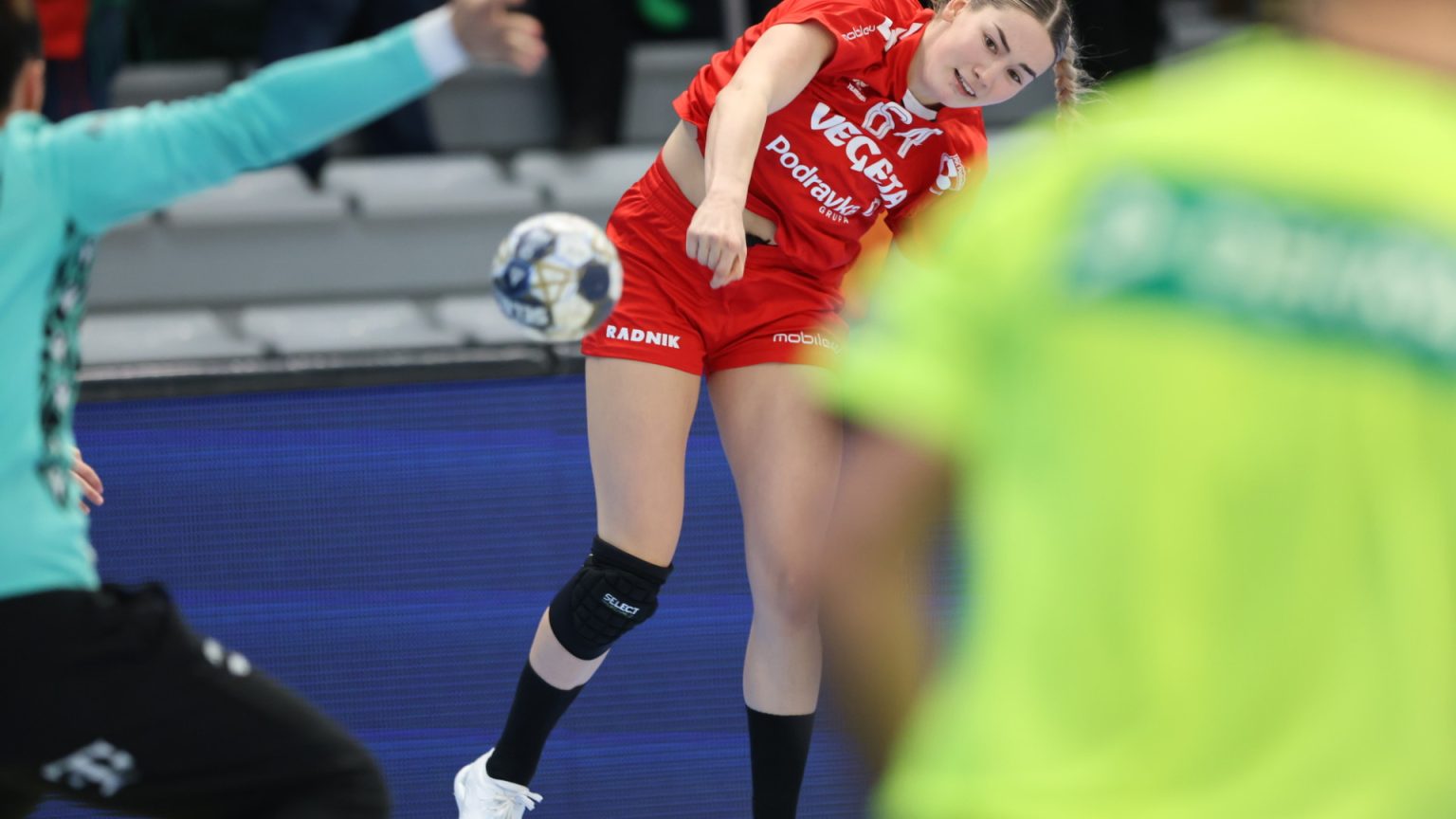 Podravka je na poluvremenu zaostajala s tri gola razlike (16:19), a nastavak je donio još više pogodaka i napetu završnicu, no domaće djevojke se nisu uspjele približiti dovoljno da bi preokret bio moguć. Najefikasnija igračica u redovima Podravke bila je Katarina Panđa s čak osam pogodaka, slijedile su je Matea Pletikosić sa sedam i Josipa Mamić sa šest. Ana Debelić postigla je četiri, Andrea Šimara tri, Tina Barišić i Ana Pandža po dva, dok se jednom u strijelce upisala Katja Vuković. Vratarka Lucija Bešen bila je na 14% obrana.
