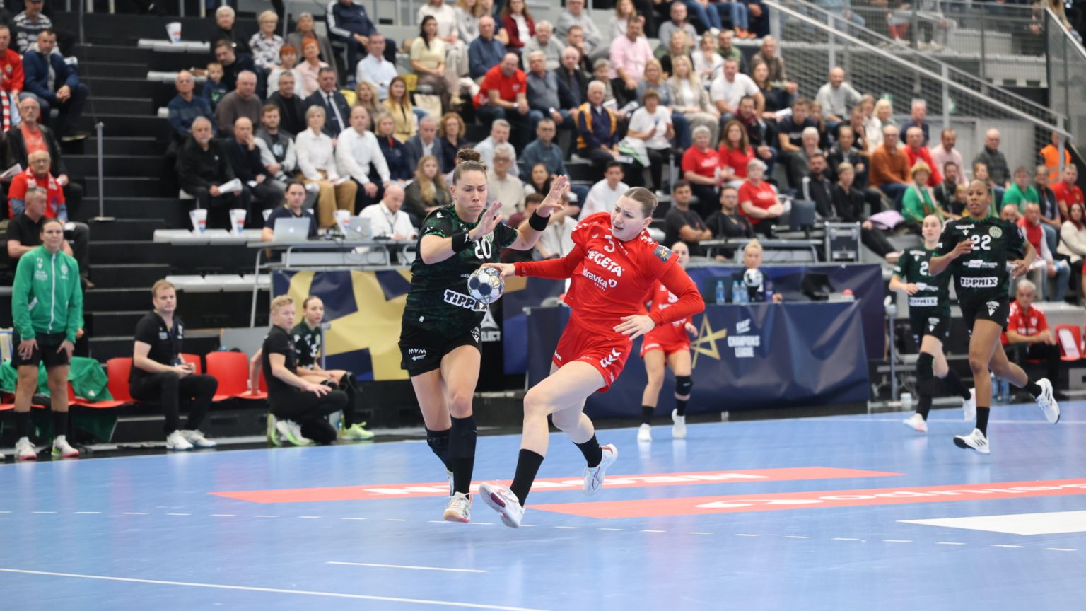 Rukometašice Podravke poražene su u 5. kolu skupine B EHF Lige prvakinja pred domaćom publikom od mađarskog Ferencvaroša s rezultatom 37:33. Susret je odigran u sportskoj dvorani Josip Samaržija-Bepo u Koprivnici, a gošće iz Mađarske pokazale su se kao prejak protivnik, iako su Podravkašice pružile vrlo dobar otpor. Mađarice su povele odmah na početku susreta i do kraja držale razmak.