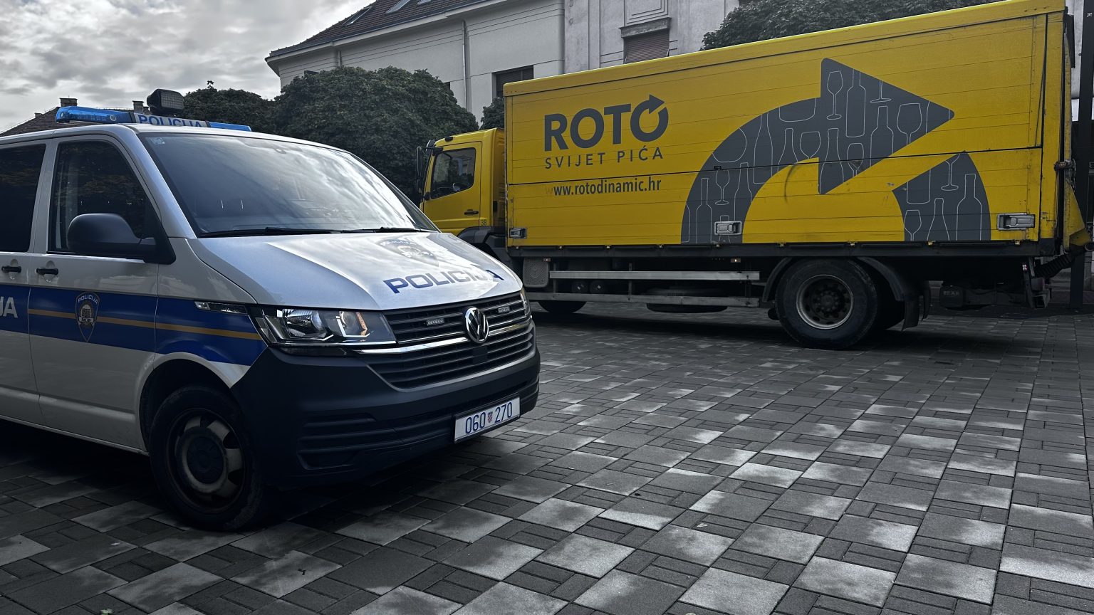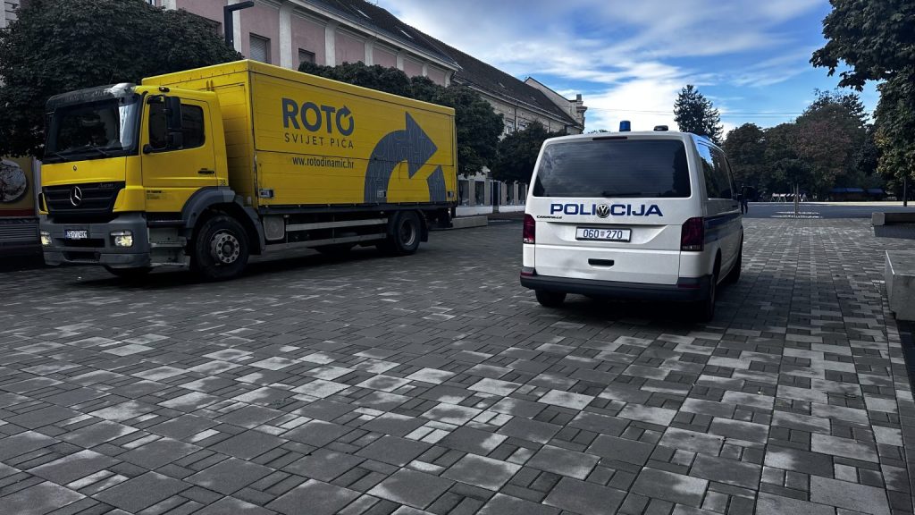 Policija upravo obavlja očevid u centru Koprivnice gdje je vozač kamionom tijekom dostave prešao preko ploča na fontani te ih oštetio. Više informacija naknadno.