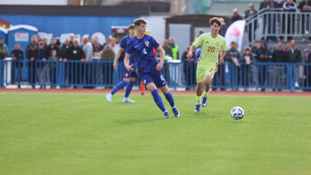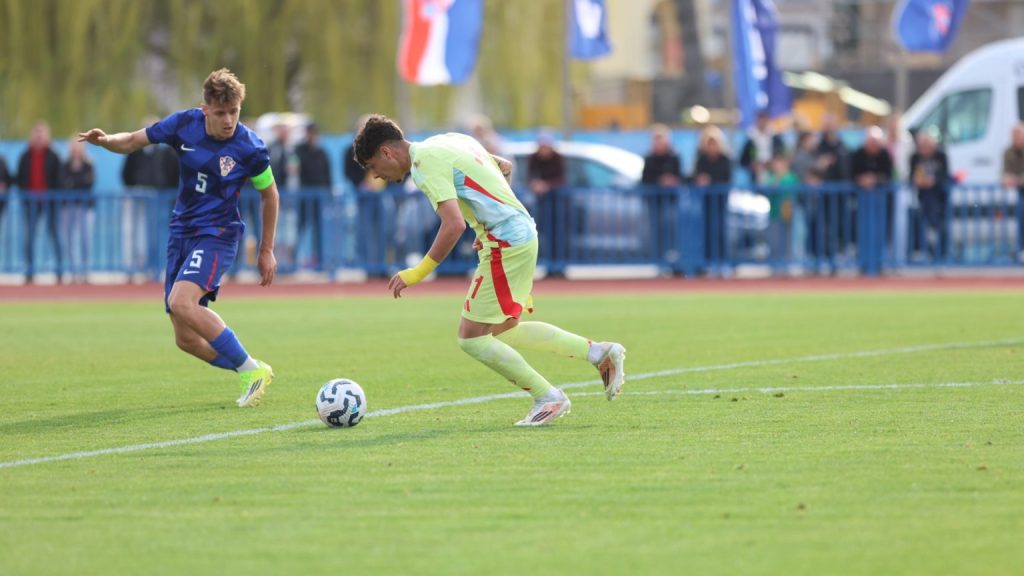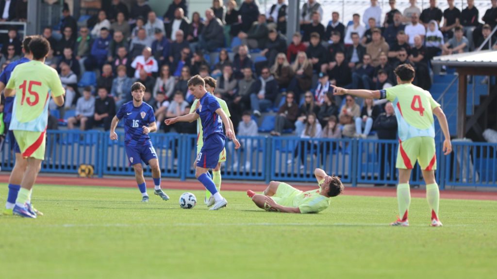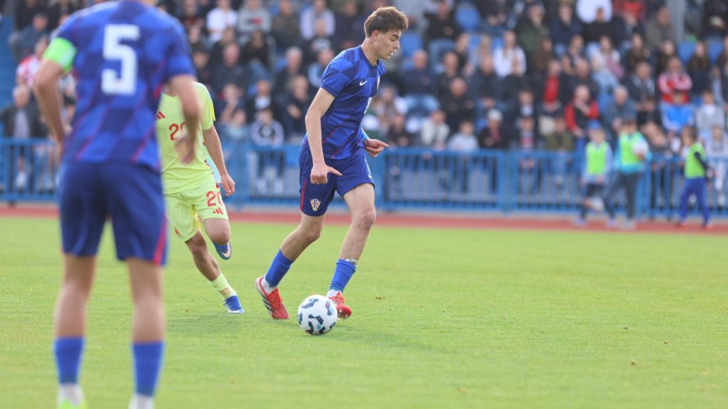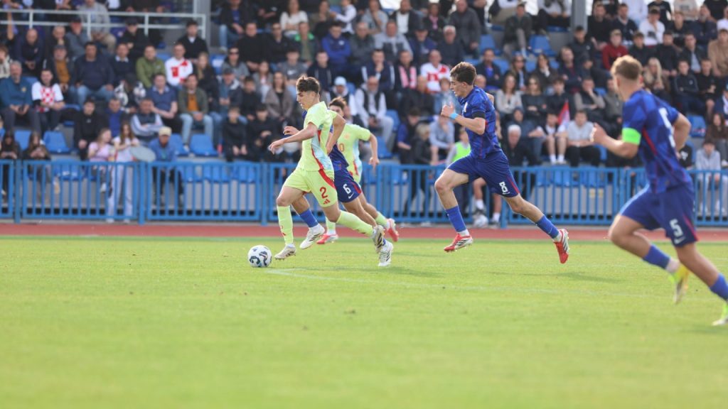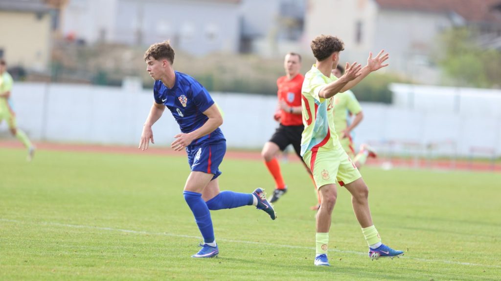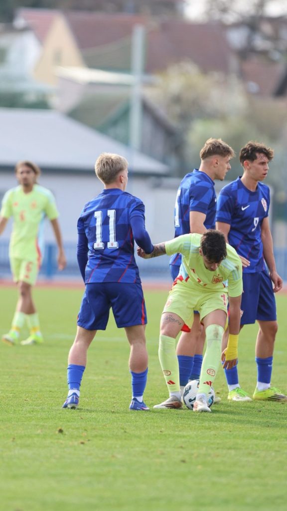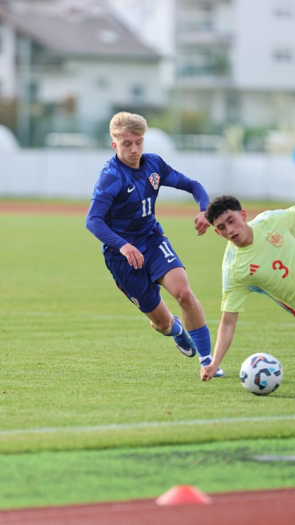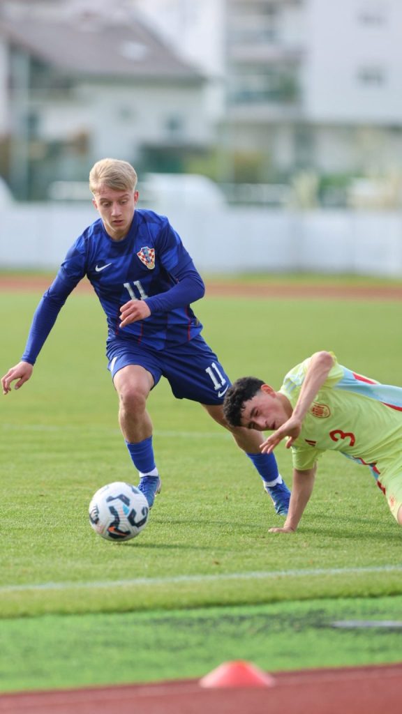Hrvatska U19 reprezentacija u Križevcima je danas odigrala prvu utakmicu u sklopu kvalifikacijskog mini-turnira za Europsko prvenstvo. Protivnik je bila Španjolska koja je slavila s visokih 4:0. U prvih 11 Zorana Vulića našao se i krilni napadač Slaven Belupa, 17-godišnjak Gabrijel Šivalec koji je odigrao 84 minute nogometa, dok je sigurno najzvučnije ime s druge strane terena bilo ono Dro Fernandeza, mlade zvijezde francuskog velikana PSG-a. Ovaj je 18-godišnjak stigao u PSG iz Barcelone, u transferu vrijednom osam milijuna eura i prije samo nekoliko dana zabio Nici gol na asistenciju Ousmanea Dembelea, dobitnika Zlatne lopte, a među strijelce se upisao i danas. Novi izazov za U19 nacionalnu vrstu bit će okršaj s Bugarskom, 28. ožujka u 15:30, a 31. ožujka protivnik će biti Engleska. Ta utakmica počinje u 14:30 i obje se igraju u Križevcima, a veliku video i fotogaleriju s današnjeg susreta pogledajte u nastavku…
