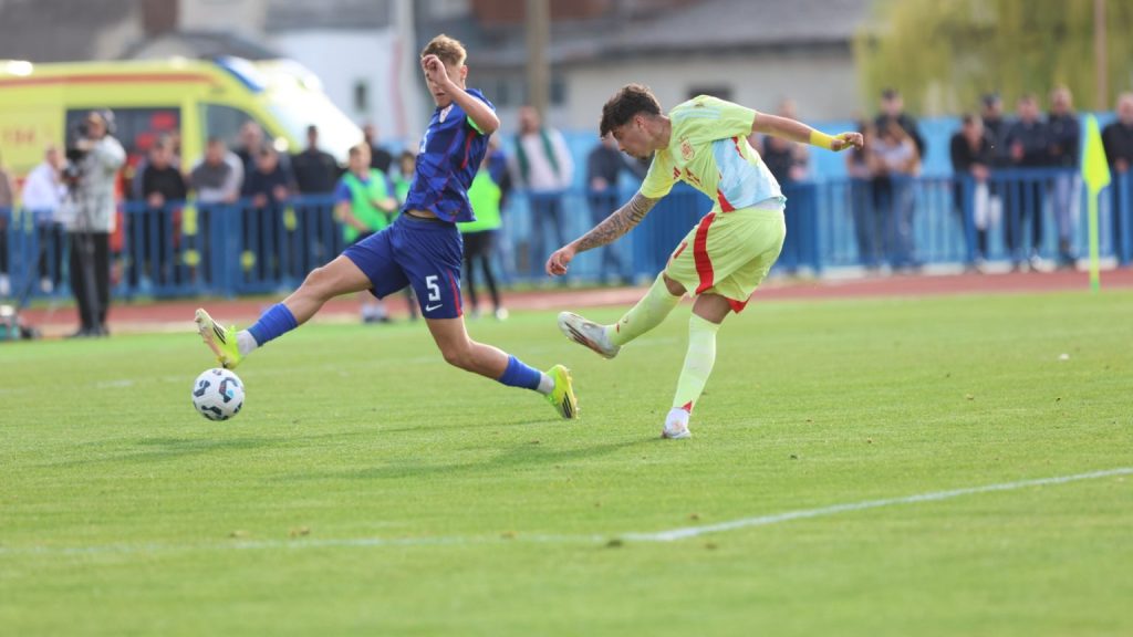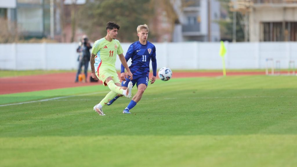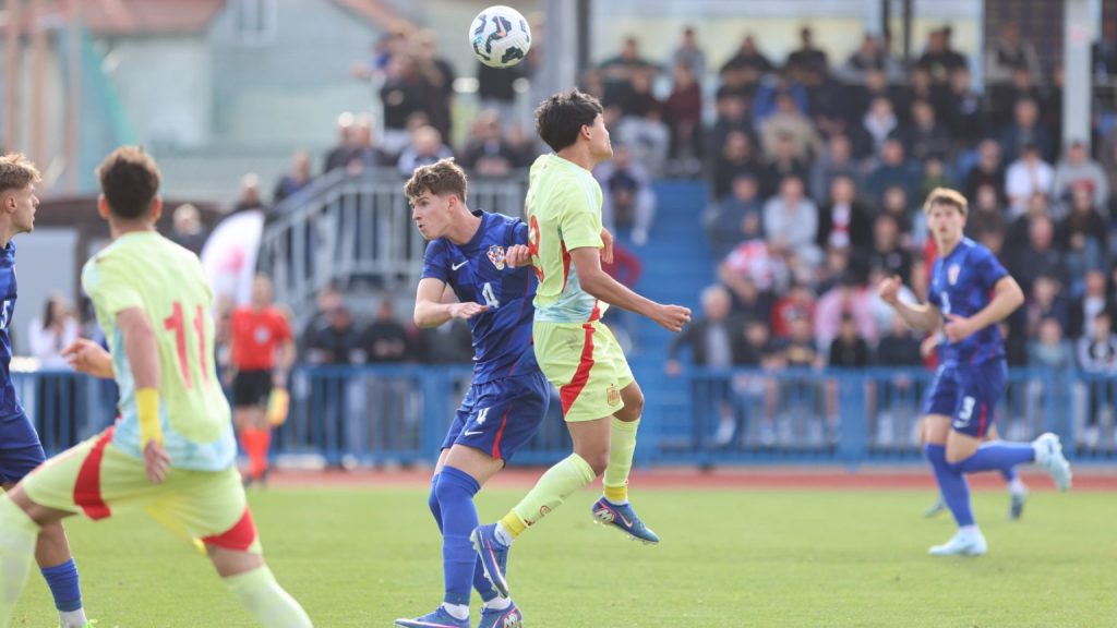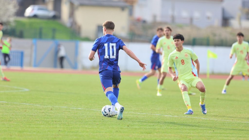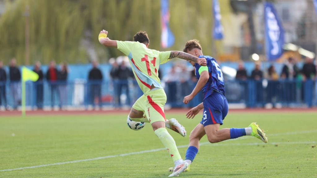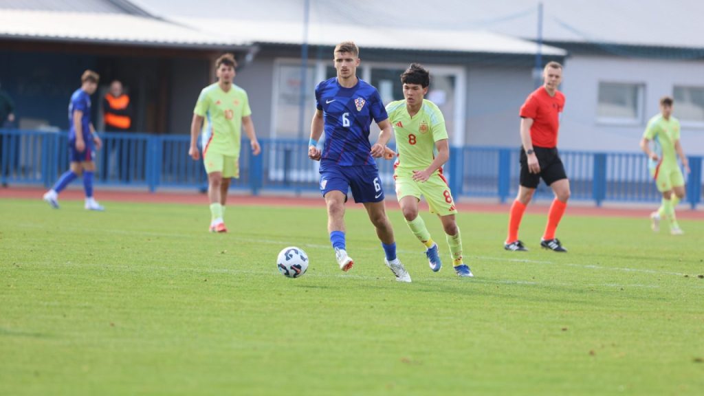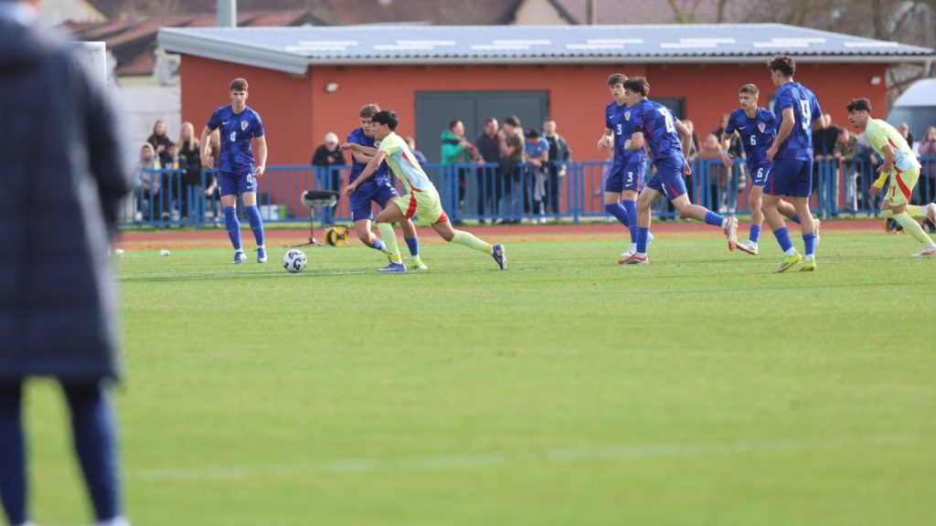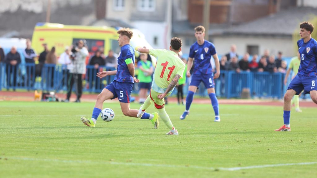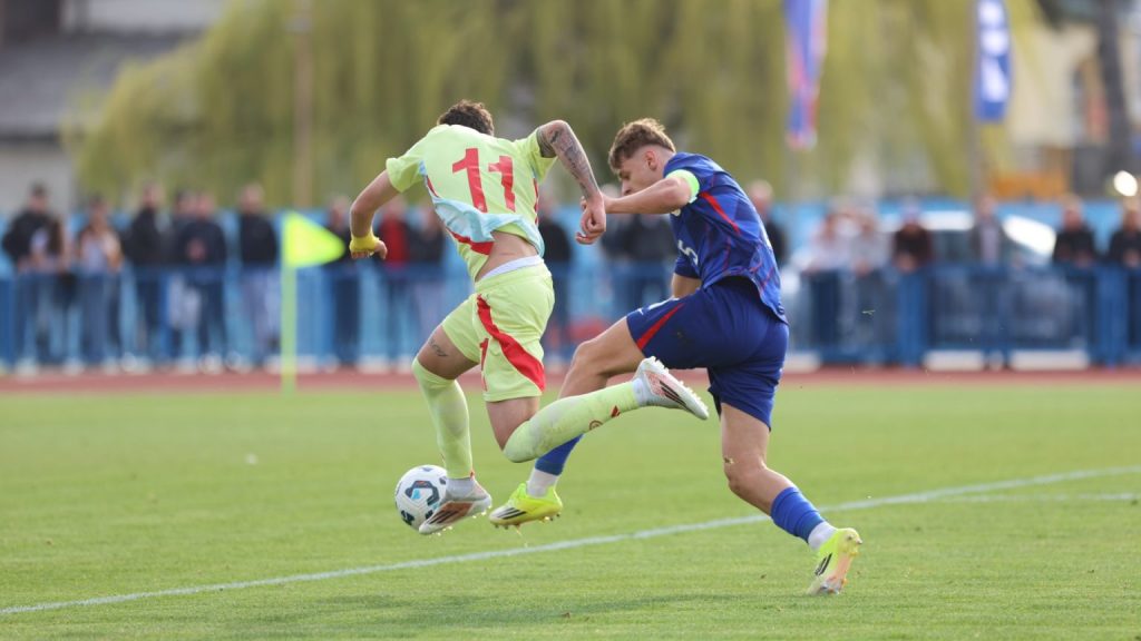 Hrvatska U19 reprezentacija u Križevcima je danas odigrala prvu utakmicu u sklopu kvalifikacijskog mini-turnira za Europsko prvenstvo. Protivnik je bila Španjolska koja je slavila s visokih 4:0. U prvih 11 Zorana Vulića našao se i krilni napadač Slaven Belupa, 17-godišnjak Gabrijel Šivalec koji je odigrao 84 minute nogometa, dok je sigurno najzvučnije ime s druge strane terena bilo ono Dro Fernandeza, mlade zvijezde francuskog velikana PSG-a. Ovaj je 18-godišnjak stigao u PSG iz Barcelone, u transferu vrijednom osam milijuna eura i prije samo nekoliko dana zabio Nici gol na asistenciju Ousmanea Dembelea, dobitnika Zlatne lopte, a među strijelce se upisao i danas. Novi izazov za U19 nacionalnu vrstu bit će okršaj s Bugarskom, 28. ožujka u 15:30, a 31. ožujka protivnik će biti Engleska. Ta utakmica počinje u 14:30 i obje se igraju u Križevcima, a veliku video i fotogaleriju s današnjeg susreta pogledajte u nastavku…