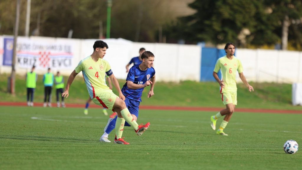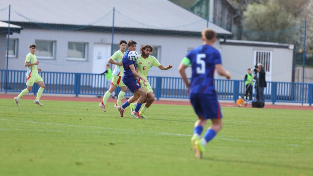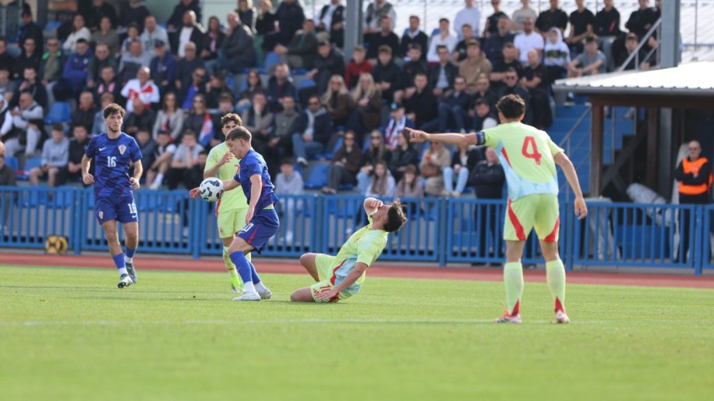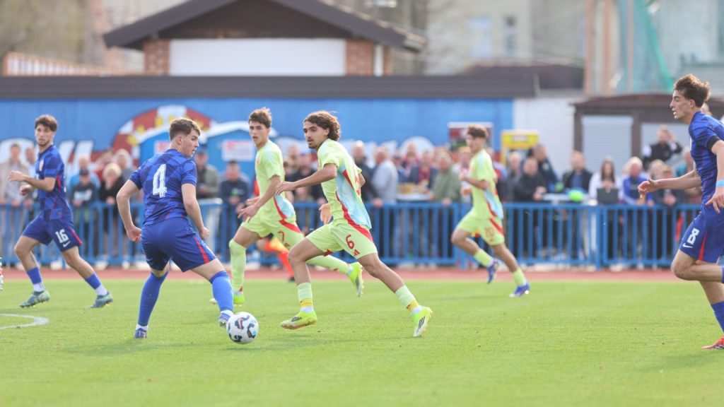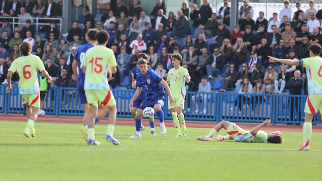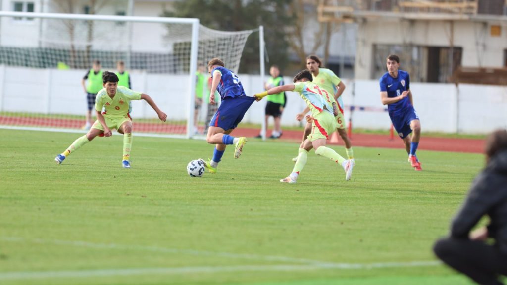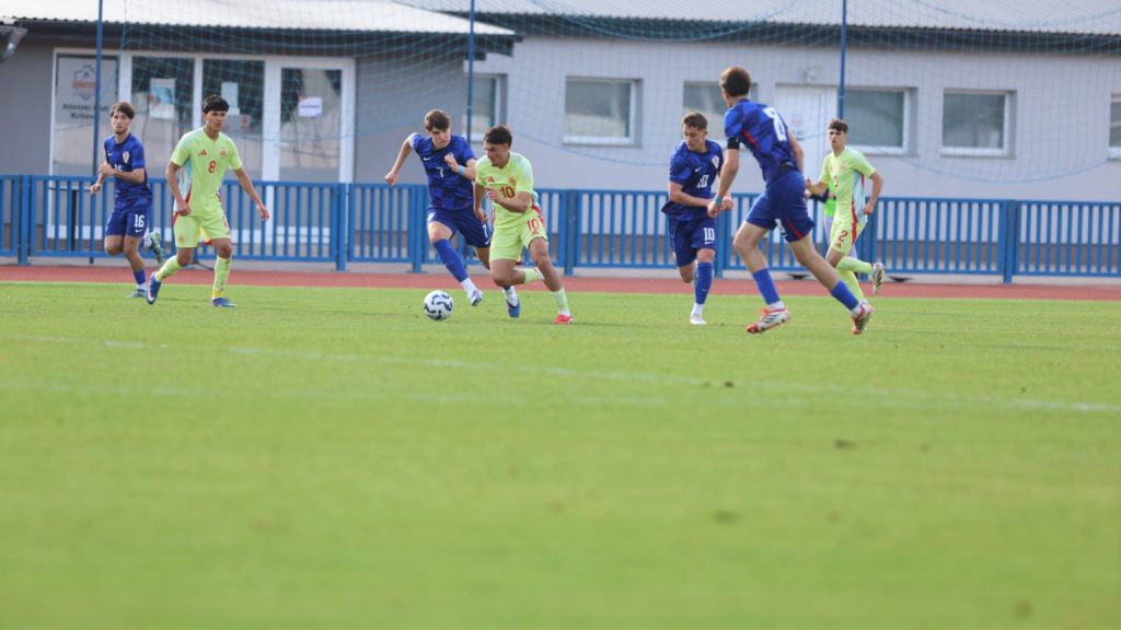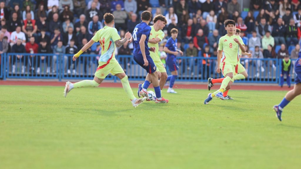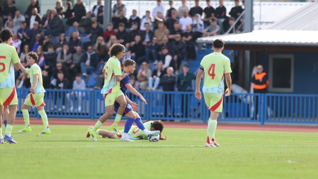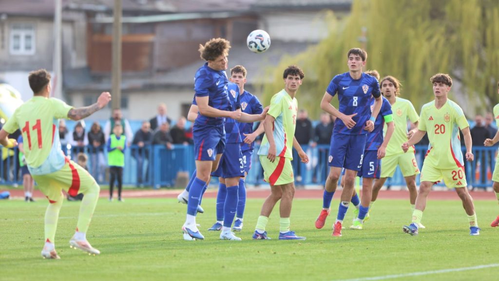 Hrvatska U19 reprezentacija u Križevcima je danas odigrala prvu utakmicu u sklopu kvalifikacijskog mini-turnira za Europsko prvenstvo. Protivnik je bila Španjolska koja je slavila s visokih 4:0. U prvih 11 Zorana Vulića našao se i krilni napadač Slaven Belupa, 17-godišnjak Gabrijel Šivalec koji je odigrao 84 minute nogometa, dok je sigurno najzvučnije ime s druge strane terena bilo ono Dro Fernandeza, mlade zvijezde francuskog velikana PSG-a. Ovaj je 18-godišnjak stigao u PSG iz Barcelone, u transferu vrijednom osam milijuna eura i prije samo nekoliko dana zabio Nici gol na asistenciju Ousmanea Dembelea, dobitnika Zlatne lopte, a među strijelce se upisao i danas. Novi izazov za U19 nacionalnu vrstu bit će okršaj s Bugarskom, 28. ožujka u 15:30, a 31. ožujka protivnik će biti Engleska. Ta utakmica počinje u 14:30 i obje se igraju u Križevcima, a veliku video i fotogaleriju s današnjeg susreta pogledajte u nastavku…