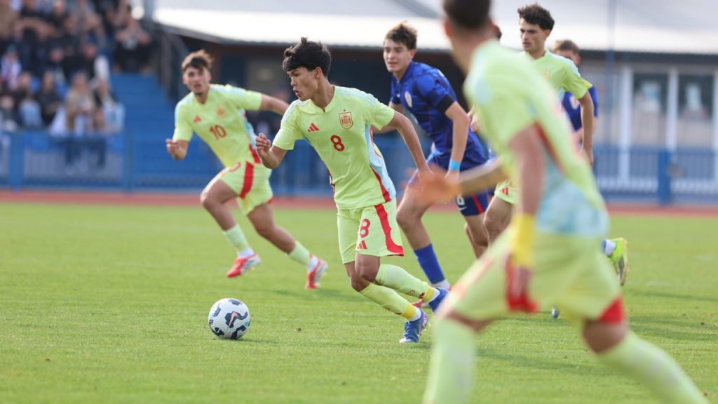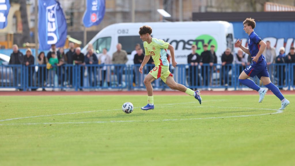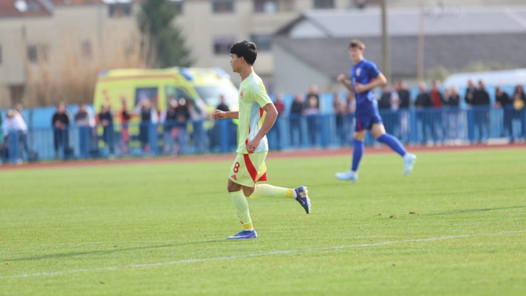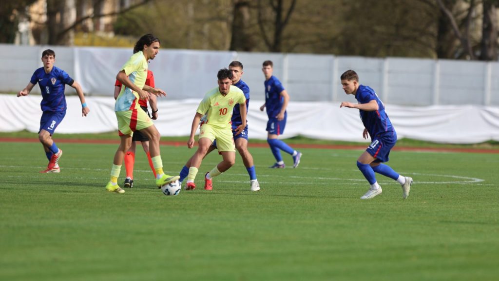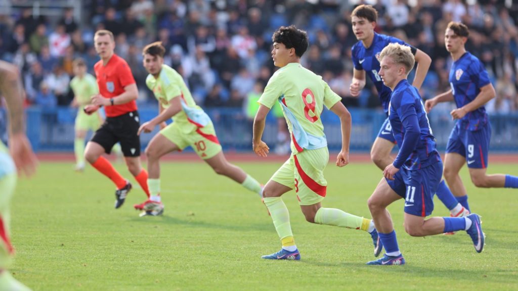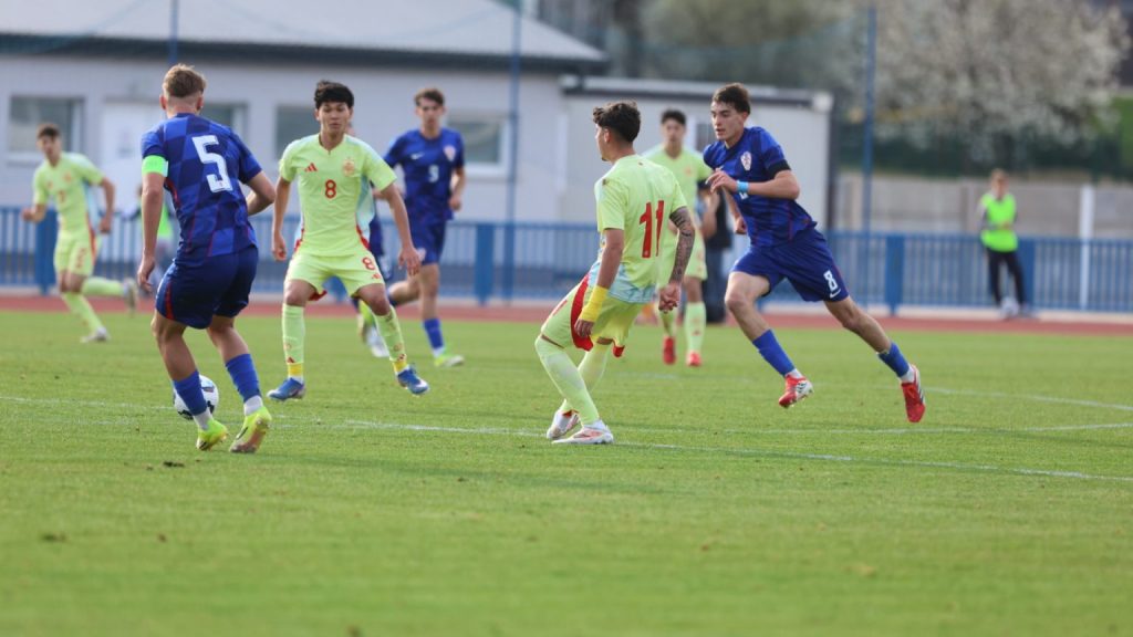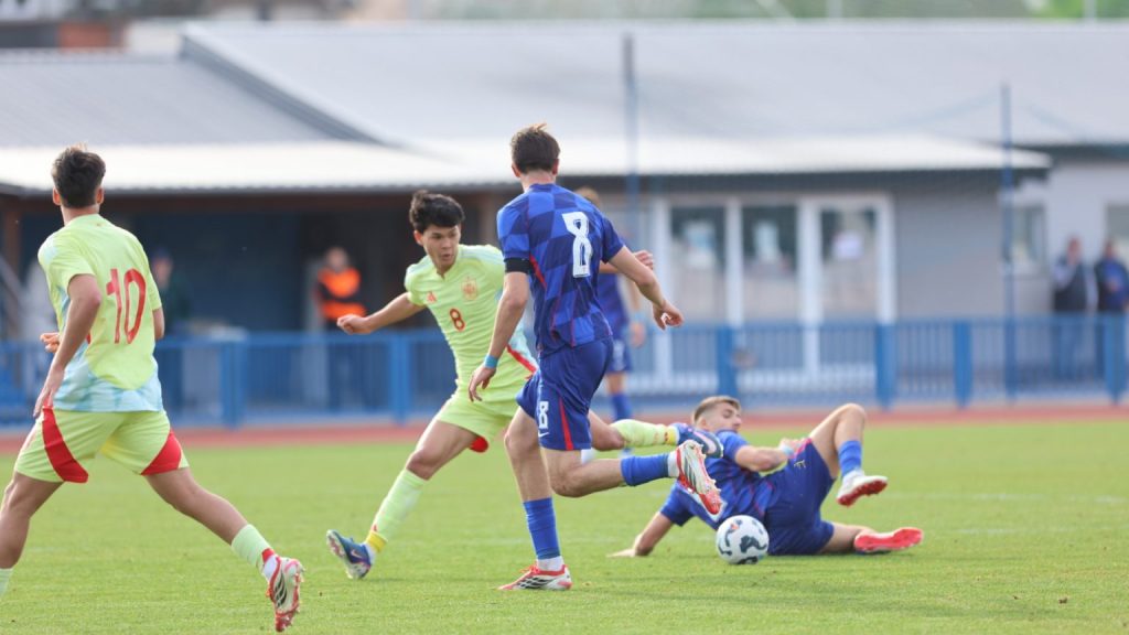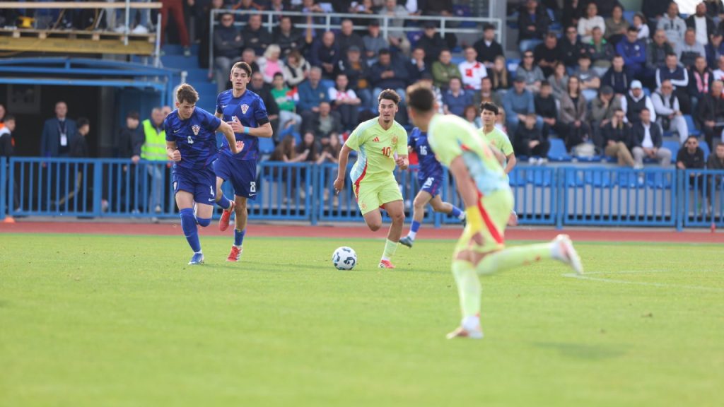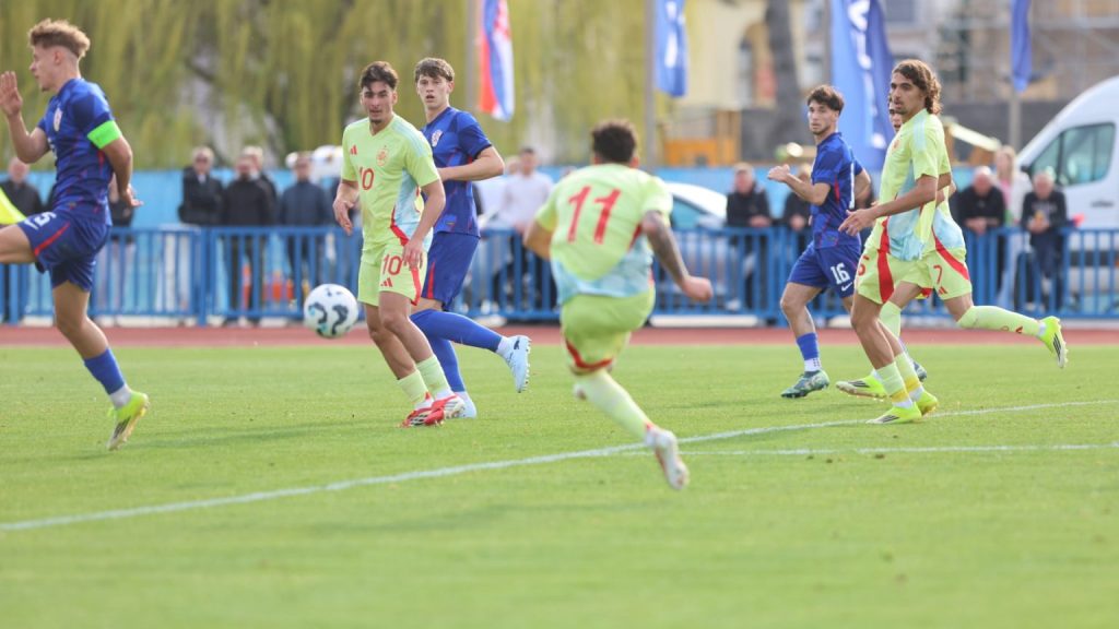 Hrvatska U19 reprezentacija u Križevcima je danas odigrala prvu utakmicu u sklopu kvalifikacijskog mini-turnira za Europsko prvenstvo. Protivnik je bila Španjolska koja je slavila s visokih 4:0. U prvih 11 Zorana Vulića našao se i krilni napadač Slaven Belupa, 17-godišnjak Gabrijel Šivalec koji je odigrao 84 minute nogometa, dok je sigurno najzvučnije ime s druge strane terena bilo ono Dro Fernandeza, mlade zvijezde francuskog velikana PSG-a. Ovaj je 18-godišnjak stigao u PSG iz Barcelone, u transferu vrijednom osam milijuna eura i prije samo nekoliko dana zabio Nici gol na asistenciju Ousmanea Dembelea, dobitnika Zlatne lopte, a među strijelce se upisao i danas. Novi izazov za U19 nacionalnu vrstu bit će okršaj s Bugarskom, 28. ožujka u 15:30, a 31. ožujka protivnik će biti Engleska. Ta utakmica počinje u 14:30 i obje se igraju u Križevcima, a veliku video i fotogaleriju s današnjeg susreta pogledajte u nastavku…