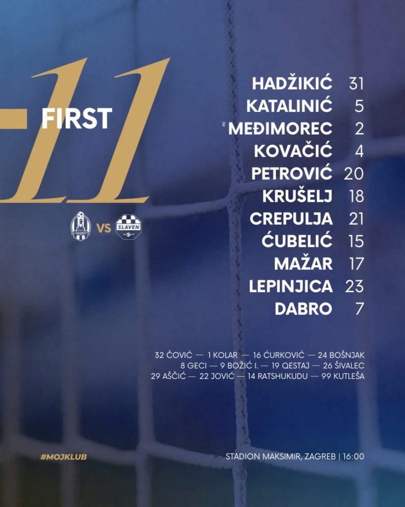 Slaven Belupo (3-4–2-1): Hadžikić – Kovačić (Aščić 88’), Međimorec, Katalinić – Krušelj, Crepulja, Ćubelić, Petrović – Mažar, Lepinjica (Bošnjak 46’) – Dabro (Božić 84’). Trener: Mario Gregurina