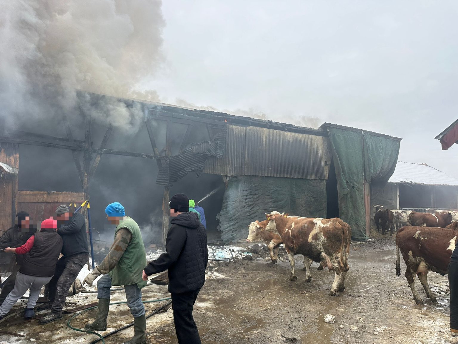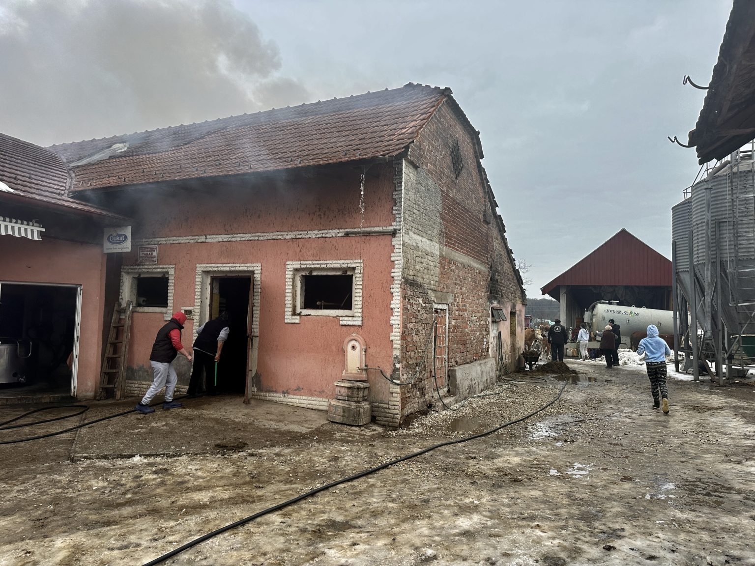 U samo nekoliko minuta brojni mještani i vatrogasci bili su u dvorištu Takačevih te su izvlačili krave iz štale. Vatrogasci su vrlo brzo stavili požar pod kontrolu pa je izbjegnuta veća šteta.
