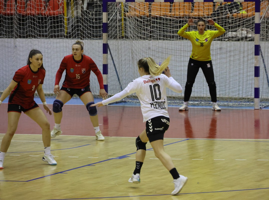 Dvoboj je pogotkom otvorila kapetanica Sara Šenvald, a u prvom poluvremenu igralo se izjednačeno. Domaće su u nekoliko navrata preuzele vodstvo, no Podravka je preko Ane Pandže, Andree Šimare i Klare Birtić vraćala prednost. Na odmor se otišlo s minimalnih 14:13 za gošće.