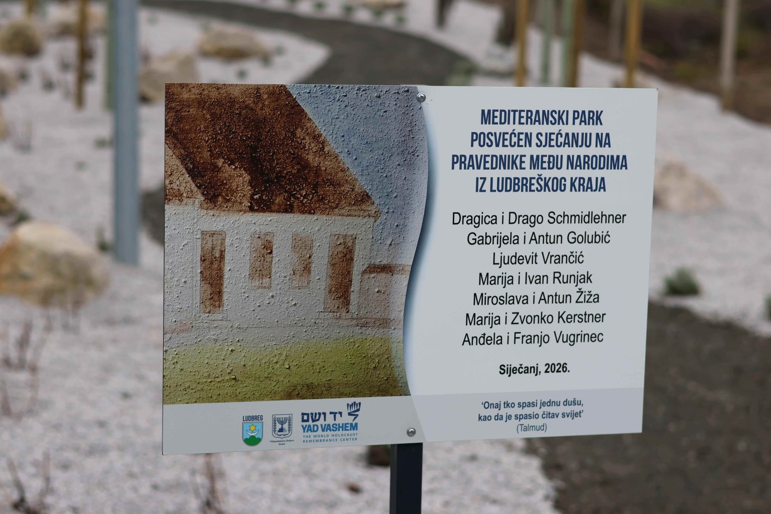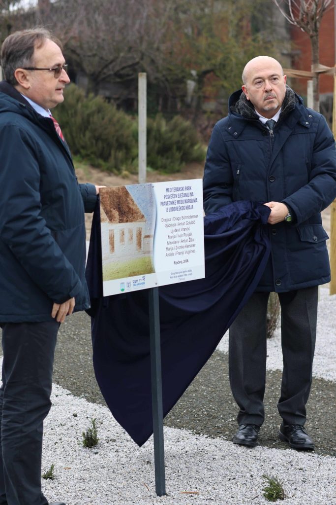 Mediteranski park uređen je u suradnji grada Ludbrega i veleposlanstva Izraela, a postavljena je i posebna ploča s 13 Pravednika iz ludbreškog kraja koji zaslužuju vječno sjećanje i zahvalu. To su: Dragica i Drago Schmidlehner, Gabrijela i Antun Golubić, Ljudevit Vrančić, Marija i Ivan Runjak, Miroslava i Antun Žiža, Marija i Zvonko Kerstner te Anđela i Franjo Vugrinec. Dubravko Bilić, gradonačelnik Ludbrega zahvalio je svima koji su došli na ovo posebno mjesto jer je to prostor snažno obilježen poviješću, ali i mjesto koje ima svoju budućnost u razvoju Ludbrega.