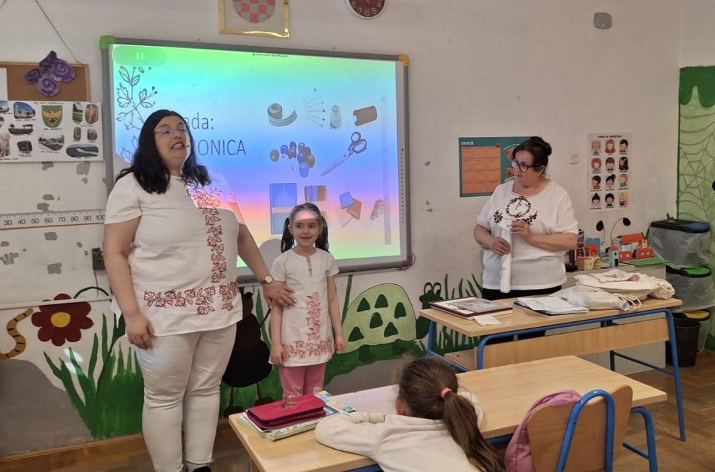 Učenici 2.d razreda Osnovne škole Đurđevac i njihova učiteljica Marija Kralj ugostili su Anicu i Danijelu Jakelić, članice đurđevačke Udruge Nit baštine koje su im predstavile obilježja podravske narodne nošnje te ih upoznale s osnovama ručnog rada. Istaknule su kako ručni rad ima brojne dobrobiti jer potiče razvoj mozga, poboljšava pamćenje i koncentraciju, razvija finu motoriku te aktivira obje moždane hemisfere. Priređena je i demonstracija vezenja, vještine kojom su se nekada bavile naše bake i prabake, a danas polako pada u zaborav. Učenici su s velikim interesom pratili rad i aktivno sudjelovali u radionici. Isprobali su preslikavanje mustre pomoću indigo papira ili slobodnim crtanjem na platnu koje su ponijeli kući kao uspomenu. Školarci koji požele nastaviti razvijati ovu vještinu moći će se predstaviti na ovogodišnjoj Picokijadi, gdje će u izložbenom prostoru Udruge imati priliku pokazati svoj rad i biti nagrađeni za trud.