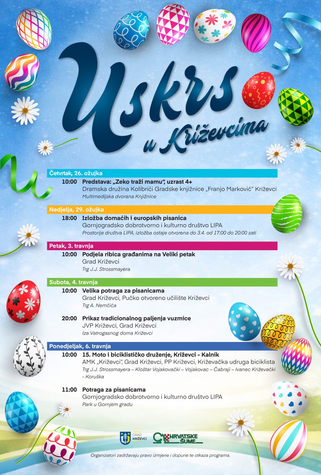 U sklopu manifestacije Uskrs u Križevcima, Grad Križevci u suradnji sa Srednjom školom „Ivan Seljanec“ i ove godine organizira niz tradicionalnih uskrsnih događanja za građane.