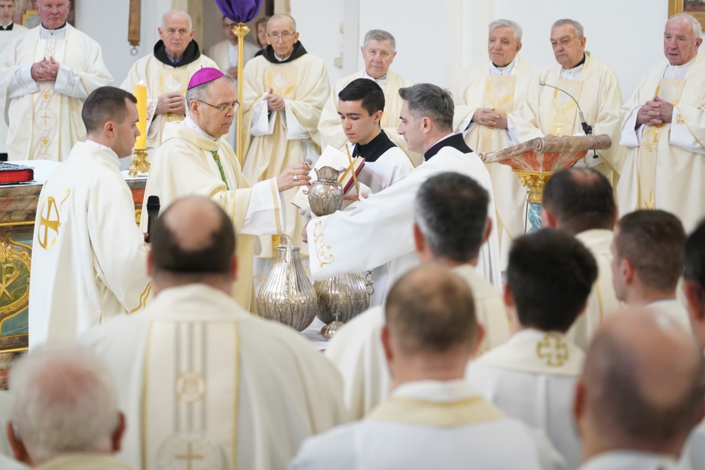 Misu posvete ulja na Veliki četvrtak, s kojom je ujedno obilježen i Dan svećenika, u katedrali Uznesenja blažene Djevice Marije u Varaždinu predvodio je varaždinski biskup Bože Radoš. Euharistijsko slavlje okupilo je brojne svećenike Varaždinske biskupije koji su obnovili svećenička obećanja dana na ređenju. U sklopu misnog slavlja biskup Radoš blagoslovio je ulje za bolesnike i katekumene te posvetio krizmeno ulje koje će se koristiti u sakramentima tijekom cijele godine.