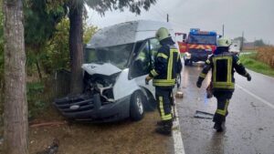 UPRAVO Vozač se kombijem zabio u stablo. Putnica je zaglavljena u vozilu