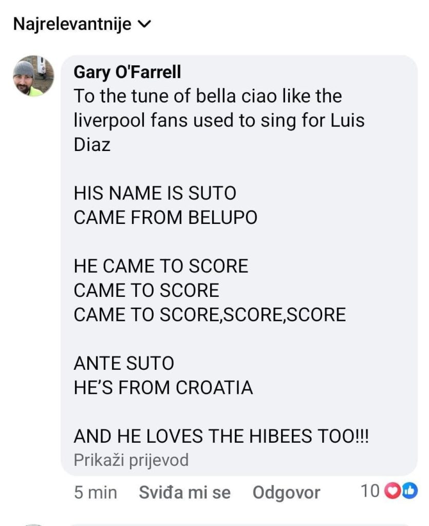 Hibernian ga je u ponedjeljak navečer predstavio kao novo pojačanje u napadu, a već u srijedu, bivši “Farmaceut”, Ante Šuto, novom je klubu donio tri boda protiv Dundee Uniteda i to pred domaćom publikom, na Easter Roadu, gdje je utakmicu uživo pratilo preko 17 tisuća gledatelja. Šuto je u igru ušao u 63. minuti, kad je Hibernian još imao minimalnu prednost, da bi Dolčekov Dundee u 81. imao vodstvo od 1:2. Uslijedio je autogol gostiju u 89., a onda 25-godišnjak iz Zmijavaca u sudačkoj nadoknadi nakon ubačaja iz prekida, glavom pospremio loptu u mrežu. Debi iz snova za mladića koji je ekspresno pokupio simpatije navijača pa i već, čini se, dobio pjesmicu!