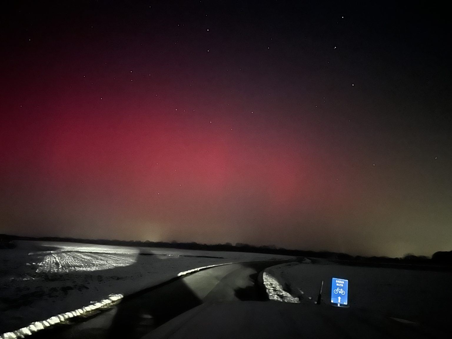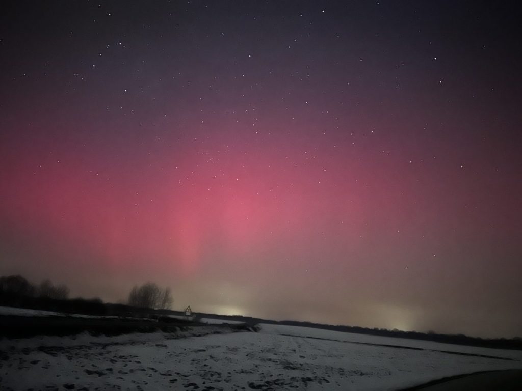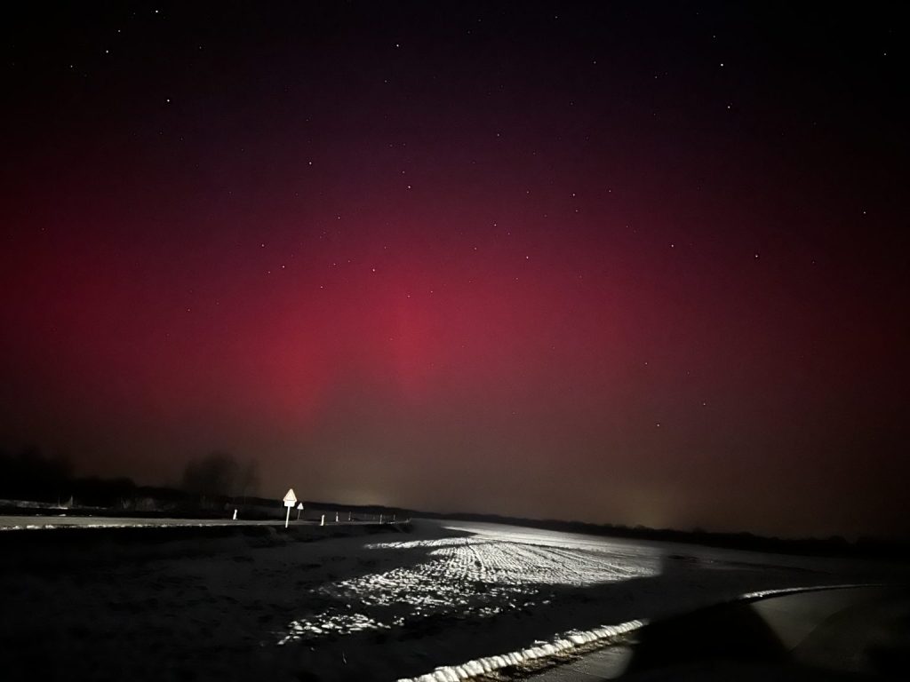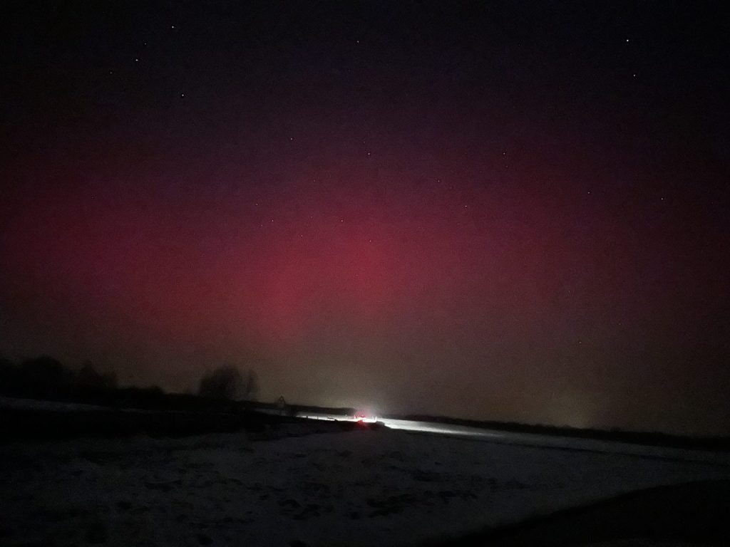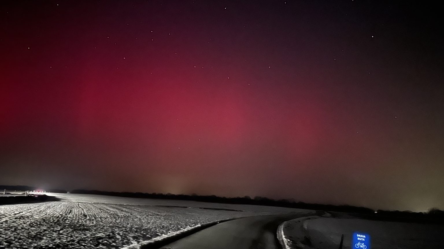 Polarna svjetlost večeras je vidljiva iznad sjeverne Hrvatske zbog snažne geomagnetske oluje koja je trenutno u tijeku. Do pojave je došlo nakon što je pojačani tok nabijenih čestica sa Sunca stigao do Zemlje i snažno poremetio njezino magnetsko polje.