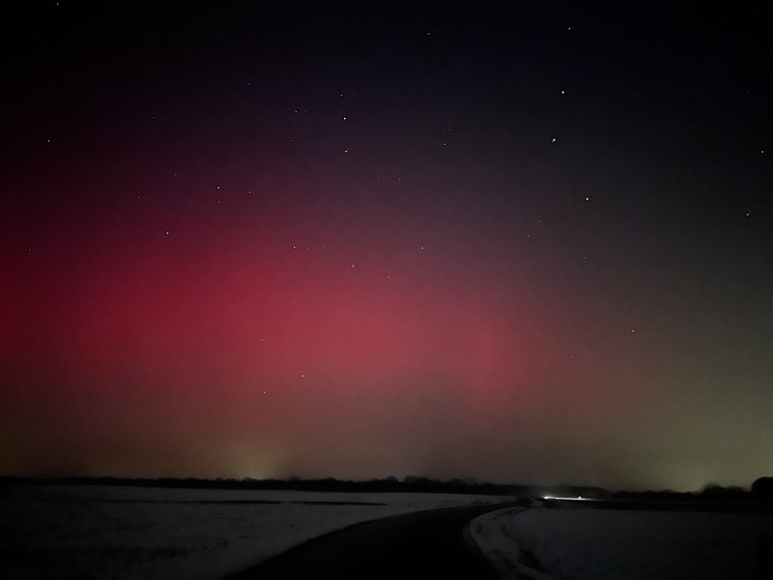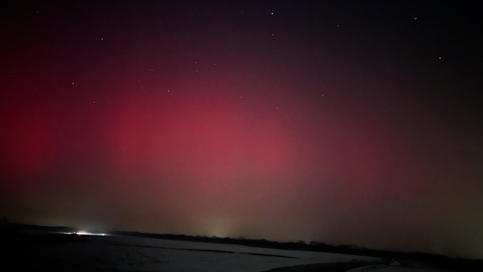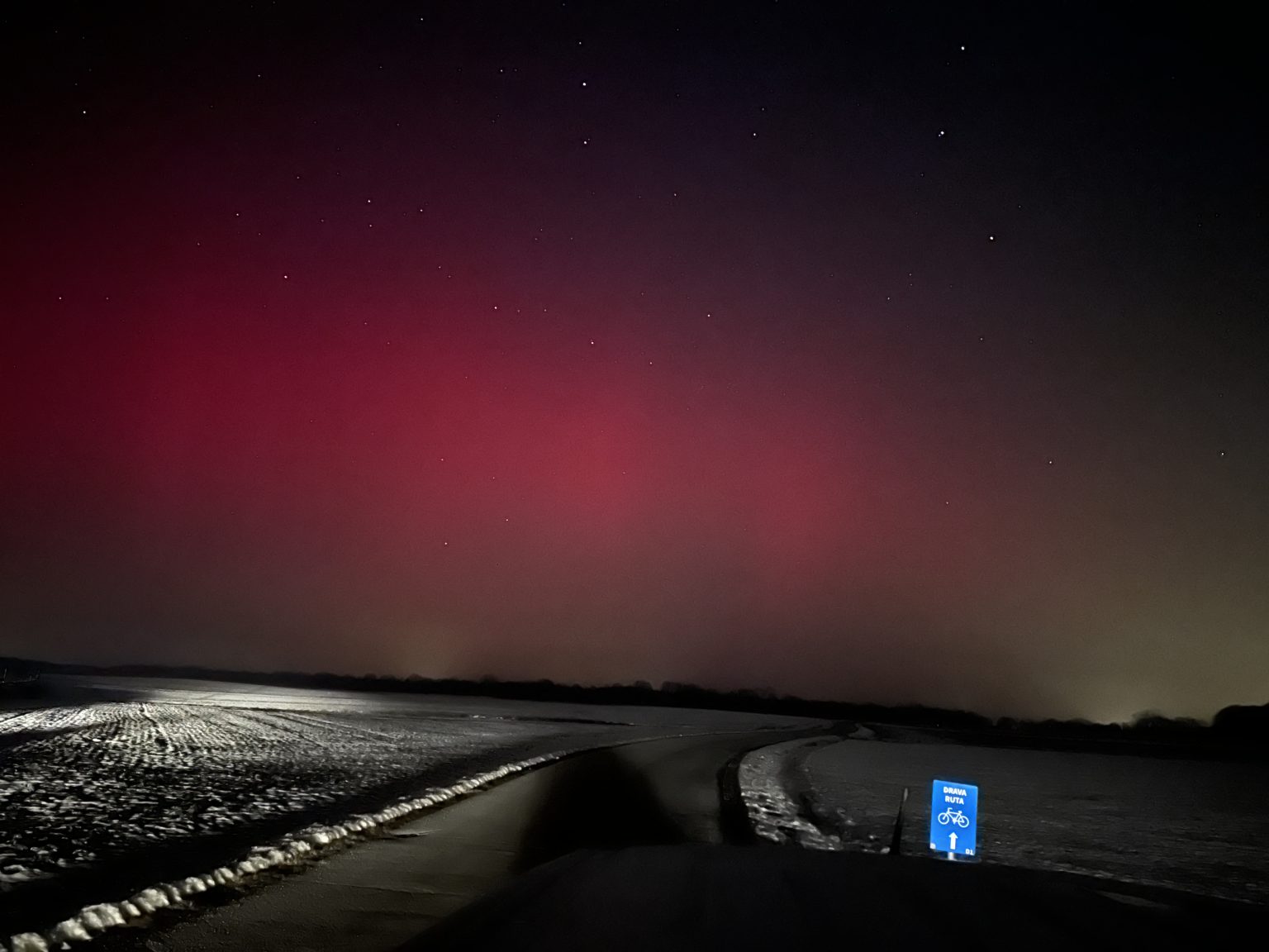 Polarna svjetlost večeras je vidljiva iznad sjeverne Hrvatske zbog snažne geomagnetske oluje koja je trenutno u tijeku. Do pojave je došlo nakon što je pojačani tok nabijenih čestica sa Sunca stigao do Zemlje i snažno poremetio njezino magnetsko polje.