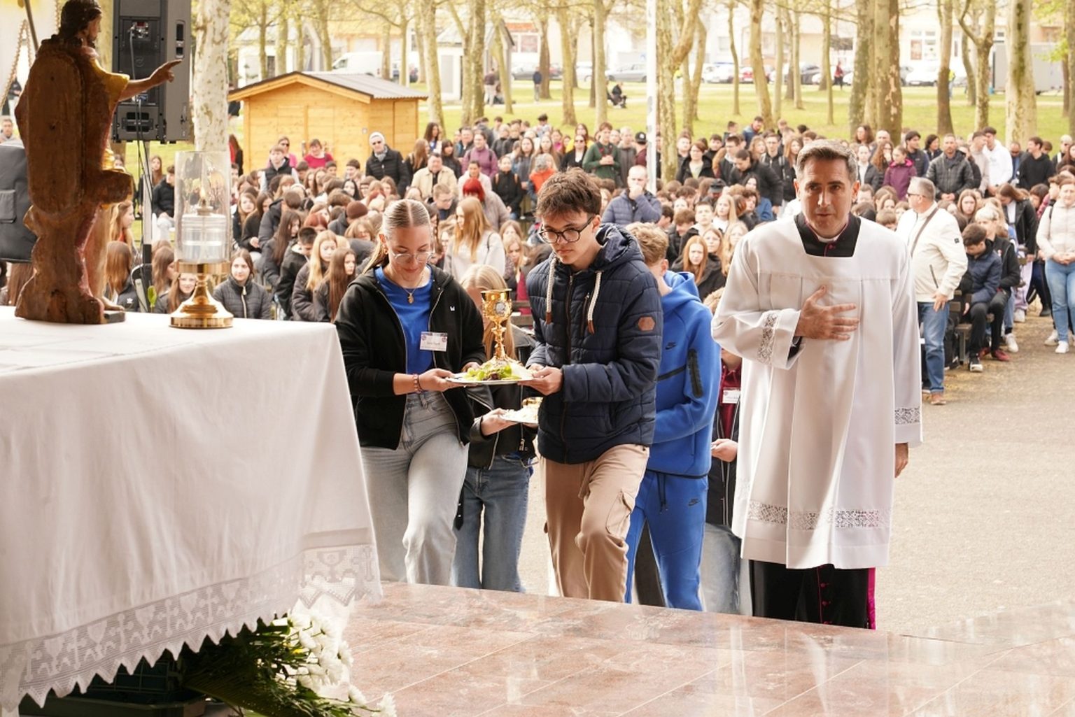 – Naš život s Bogom nije nešto izvanjsko, nego onaj nutarnji život Duha koji nas čvrsto veže uz Onoga koji je došao da nama dadne život – naglasio je biskup Radoš. Nakon svete mise susret je nastavljen svjedočanstvom Josipa Milkovića, koji je od potpuno zdravog mladića u trenu jedne eksplozije postao stopostotni invalid, dok je zabavni dio programa bio sastavljen od pjesme, plesa i banseva.